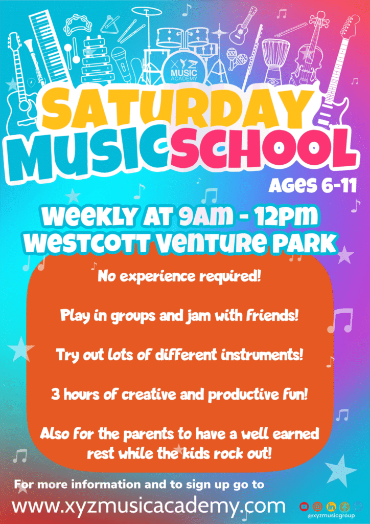 Give your child the gift of music with our exciting Saturday Music School—a fun, affordable 3-hour session every Saturday morning at XYZ Music Academy HQ.